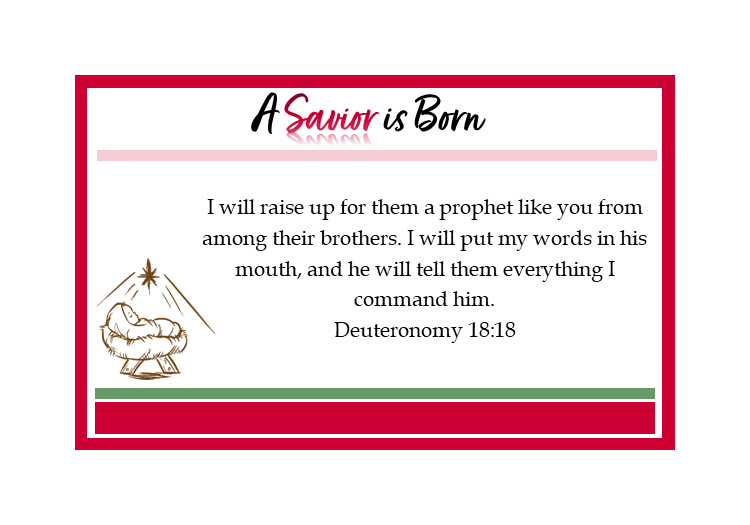 He tells them that God has promised to send a new prophet. This new prophet will be another hero in Israel to lead the people back to God. More than a thousand years later they under the rule of Rome. On that first Christmas in Bethlehem God sent a new prophet to deliver the people.