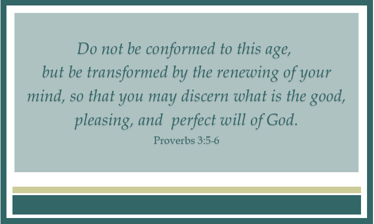 That word conformed is an interesting word. It is the transliteration of syschēmatizō. The Greek word meant: to conform one’s self (i.e. one’s mind and character) to another’s pattern, (fashion one’s self according to). Paul is telling us to not conform our mind and character to the pattern of this world. To not act according to this world’s philosophy.