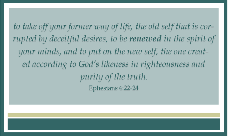 SO Paul tells us, daily we need to change our clothes. Our old clothes are filthy dirty with deceitful desires, and we if we want a renewing of our minds, we need to put on a new set of clothes. God’s clothes are created according to God’s likeness in righteousness and purity of the truth.