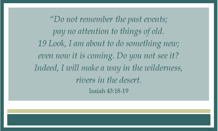 Isaiah then says, Start looking ahead. He says see God bring a newness into your life and anticipate something great is coming. When we look forward to the new things of God, we need to be careful to not make an “idol” out of new. We need to stay vigelent that our ears do not itch for new fads or experiences that count for nothing. We do nto give glory to the new things, but glory to a God who brings new things. Its easy to fall into that trap. God says to us, I am doing something new in your life today, can you see it and discern it?