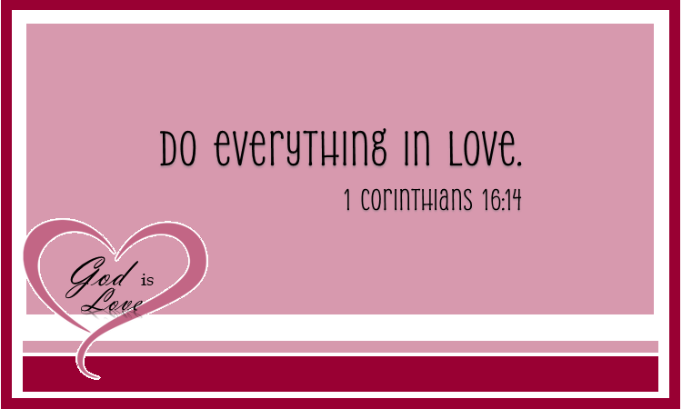 We just concluded a study of 1 Corinthians 13. Paul went into great lengths to explain what love means. This earlier passage helps give context and meaning to what it means to do everything in love. To do everything in love means we intentionally make choices each day out of love that results in being patient, kind, and forgiving. We can live in ways that reflect obedience and trust in God by doing everything in love.