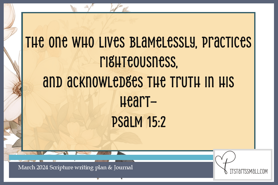 As David opens with question, He answers them in the next four verses and we are going to focus in on those verses to find out who can dwell within the presence of God? We are going to use these next verses to self-examine ourselves. What are we looking for? We are looking for our own unrighteousness. Anything in our hearts that is not of God. Remember, God is our righteousness. If it is not from Him, it is time to toss it out. Sweep it out. Clean it out.