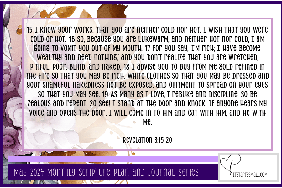This rebuke by Jesus had a special impact on the church Laodicea because their city water supply started hot from Hierapolis, but by the time it arrived in Laodicea, it was lukewarm. Like their water supply, they were tepid in their spirituality because they were content with material things. Self-satisfaction leads to spiritual death.