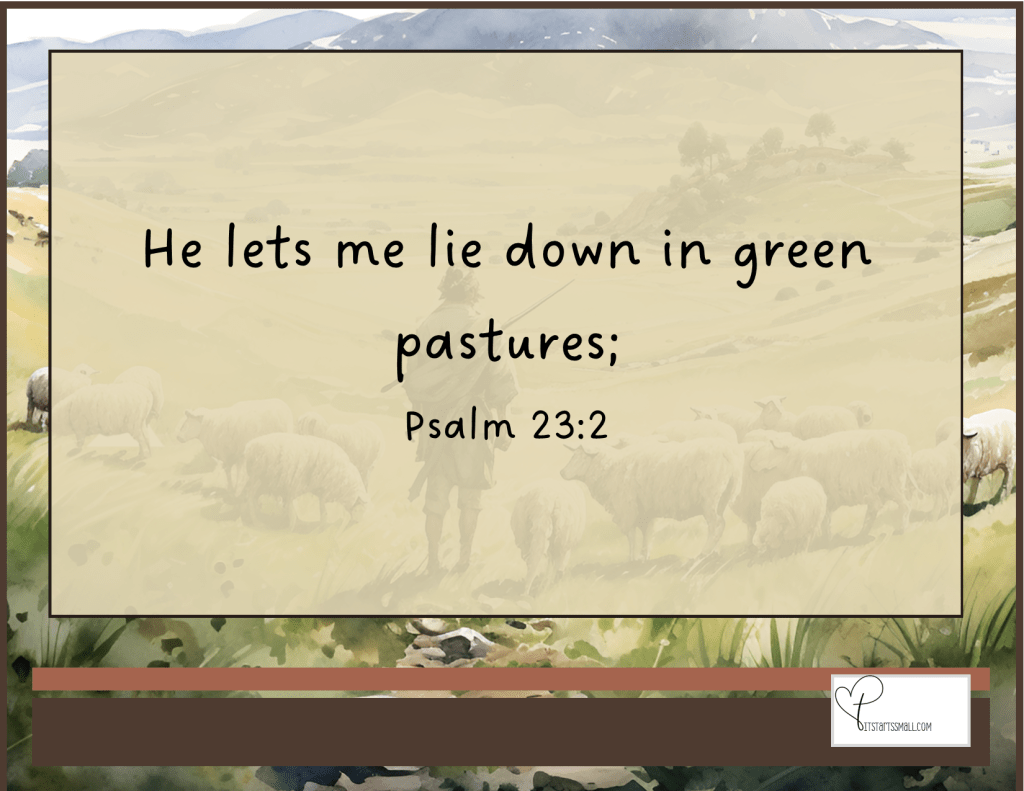 Isn’t that beautiful? It certainly changes our perspective of what David meant by green pastures, doesn’t it?