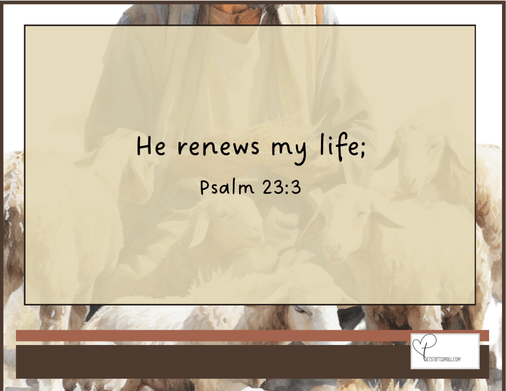 David credits the Lord, his shepherd, with restoring or refreshing his soul. How often the Lord restores us to good spiritual health after the evil world system has hurt us, or, even more often, when we have hurt ourselves by failing to follow Him closely! When Peter relied on self-confidence to keep him faithful to the Lord, he failed miserably, but the Good Shepherd graciously restored him to spiritual health: