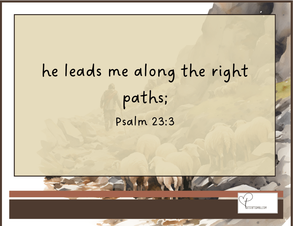Sheep were accustomed to following their shepherd in well-worn paths, but occasionally a sheep would stray from a safe path and become lost. Then the shepherd would leave the rest of the sheep in the custody of helpers and go searching for the lost sheep. Jesus, the Good Shepherd (John 10:11, 14), leads us in paths of righteousness, but we may wander from the chosen path.