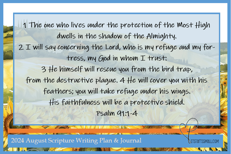 This is among the top of my list for all time favorite Psalms. Psalm 91 is known as a prayer of protection or Psalm of protection. The Lord Himself promises that if you make Him the place where you find shelter, rest, and safety, then He will return protection and cover you from every trap and snare the enemy has set for you.