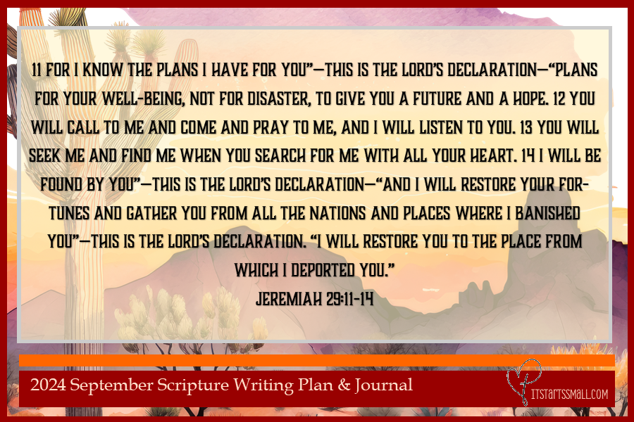 For I know the plans I have for you”—this is the Lord’s declaration—“plans for your well-being, not for disaster, to give you a future and a hope.