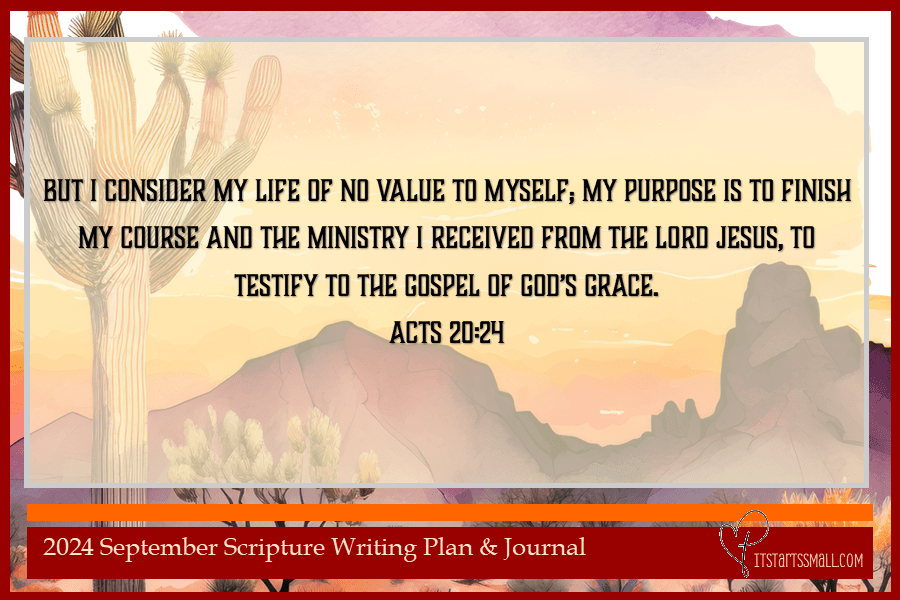 But I consider my life of no value to myself; my purpose is to finish my course[a] and the ministry I received from the Lord Jesus, to testify to the gospel of God’s grace.