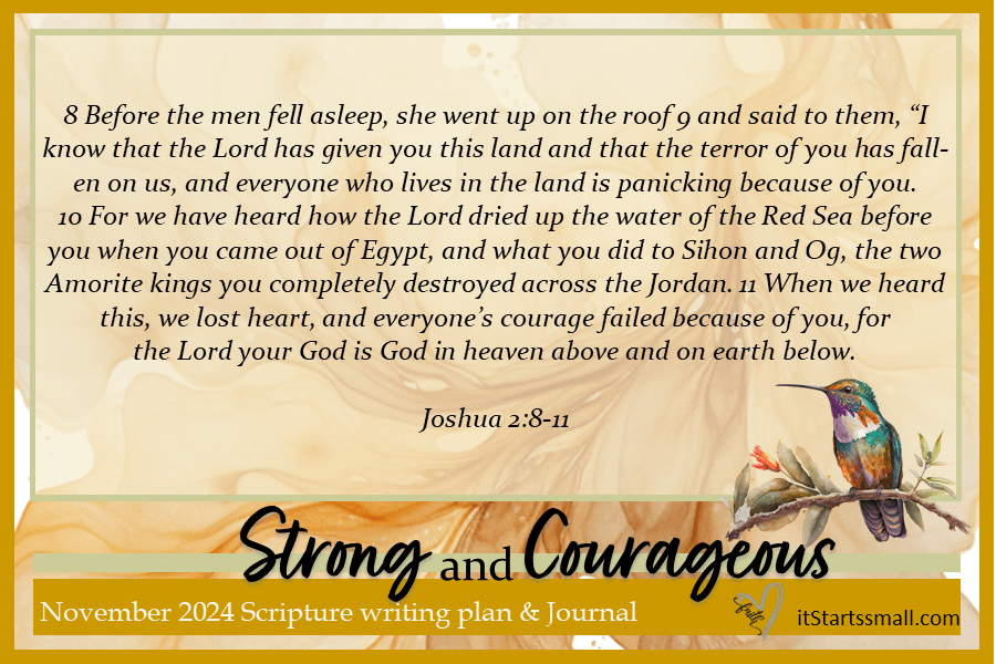 Rehab fixed her loyalty to the one true God. We are strong and courageous when we fix our eyes on Christ. When he is the focus of our decisions and directions we can boldly take courageous steps forward.