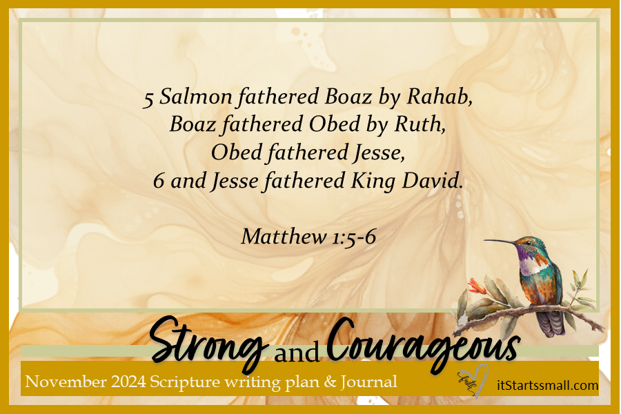 In the second chapter of the book of Joshua, we encounter a woman named Rehab. We learn that she is is a woman of great faith in the book of Hebrews (Hebrews 11:31). In Joshua, we learn that she is a woman with a shameful past (2:1). She could have hidden in fear and betrayed Joshua’s men. She instead chose to to believe in the Israelites God. She chose to be obedient to God and protect these men. She was not just chosen by God to protect the spies, she was chosen by God to protect the lineage of Christ. She later became the great-great-grandmother of King David (Matthew 1:5-6).