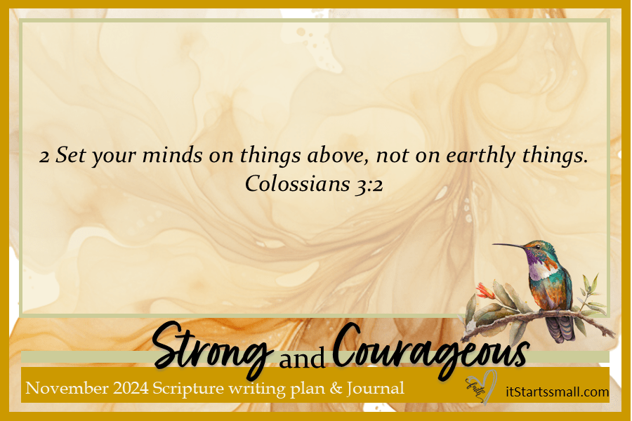 Setting your mind on the things above, and not of this world by memorizing scripture and studying God’s Word. Take a significant step today by asking God to reveal His will for your life and take that courageous step towards obeying God’s calling.