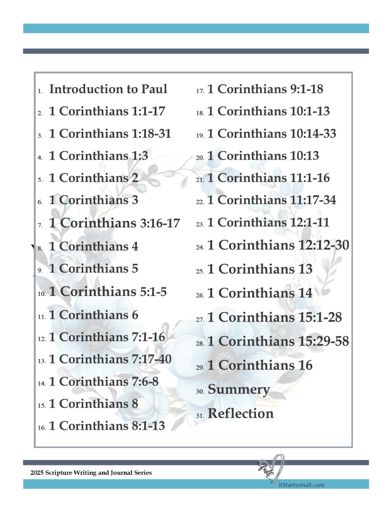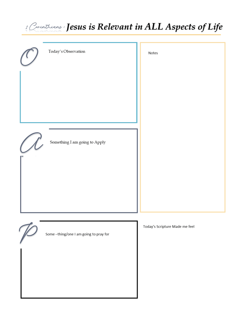 This next year, we will take our Holy Spirit microscope. We will dive deep into the Letters of the New Testament. This could quite possibly continue into 2026, we will let the Lord lead and see where it goes. For January, we are going to start in 1 Corinthians. The overall theme of Paul’s letter to the Corinthians is that Jesus is relevant in ALL areas of our lives.