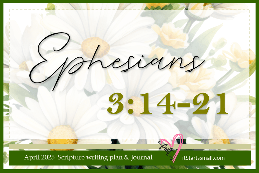 14 For this reason I kneel before the Father 15 from whom every family in heaven and on earth is named. 16 I pray that he may grant you, according to the riches of his glory, to be strengthened with power in your inner being through his Spirit, 17 and that Christ may dwell in your hearts through faith. I pray that you, being rooted and firmly established in love, 18 may be able to comprehend with all the saints what is the length and width, height and depth of God’s love, 19 and to know Christ’s love that surpasses knowledge, so that you may be filled with all the fullness of God.