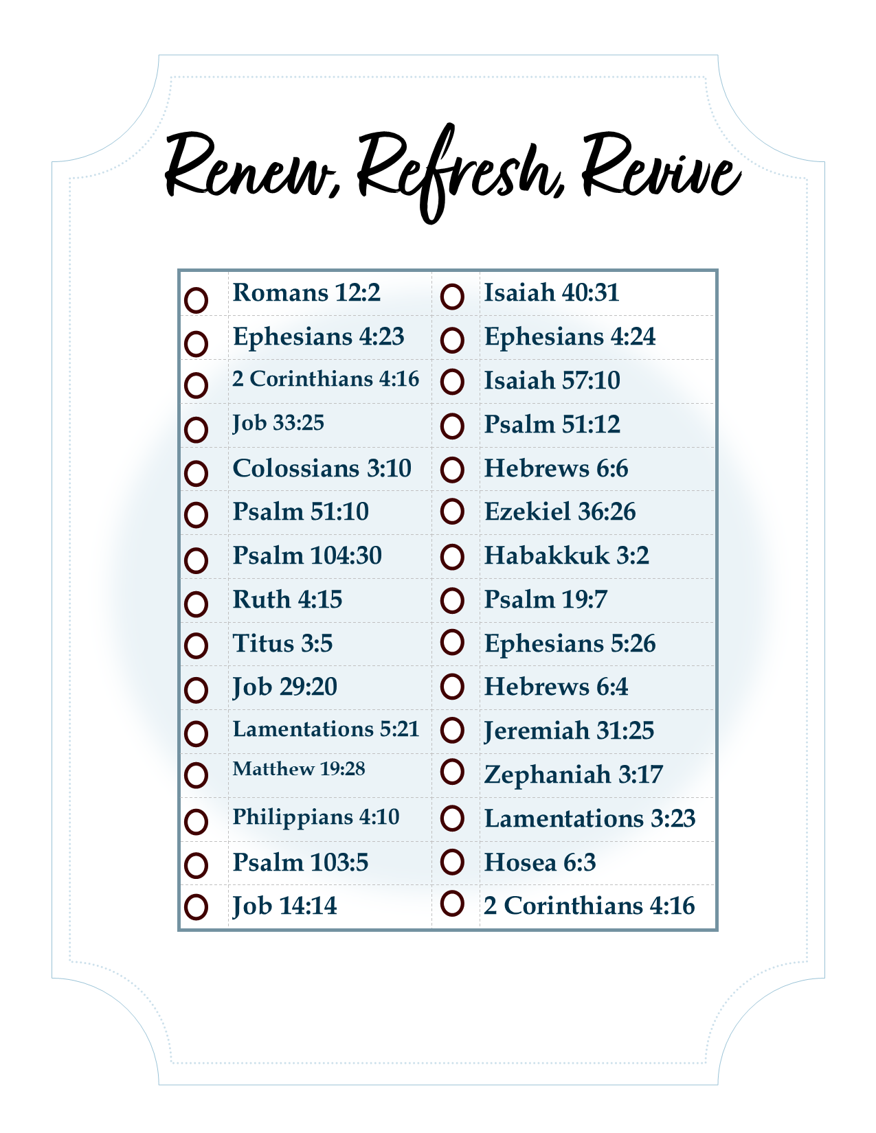 This set of scriptures is focused on Renewing our mind. Taking our minds from a self-centered focus to a Godly Focus.