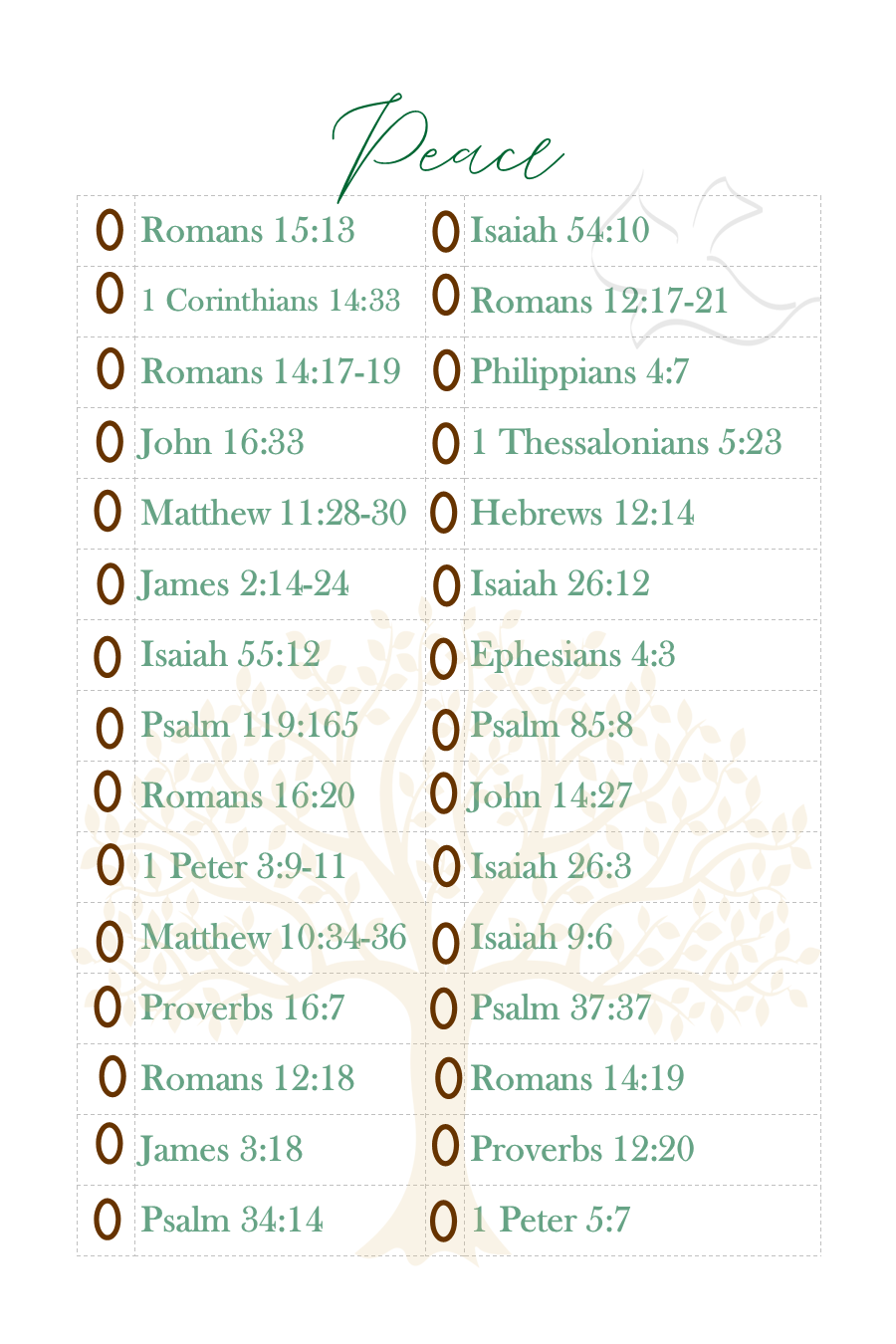 Peace….. What does it mean when it is said, God’s peace passes all understanding? This scripture plan is 30 verses about the peace of God.