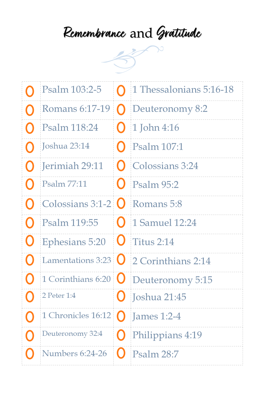 This scripture plan takes a look at Remembering God and from remembering Who He IS, His Goodness, we learn gratefulness and thanksgiving.