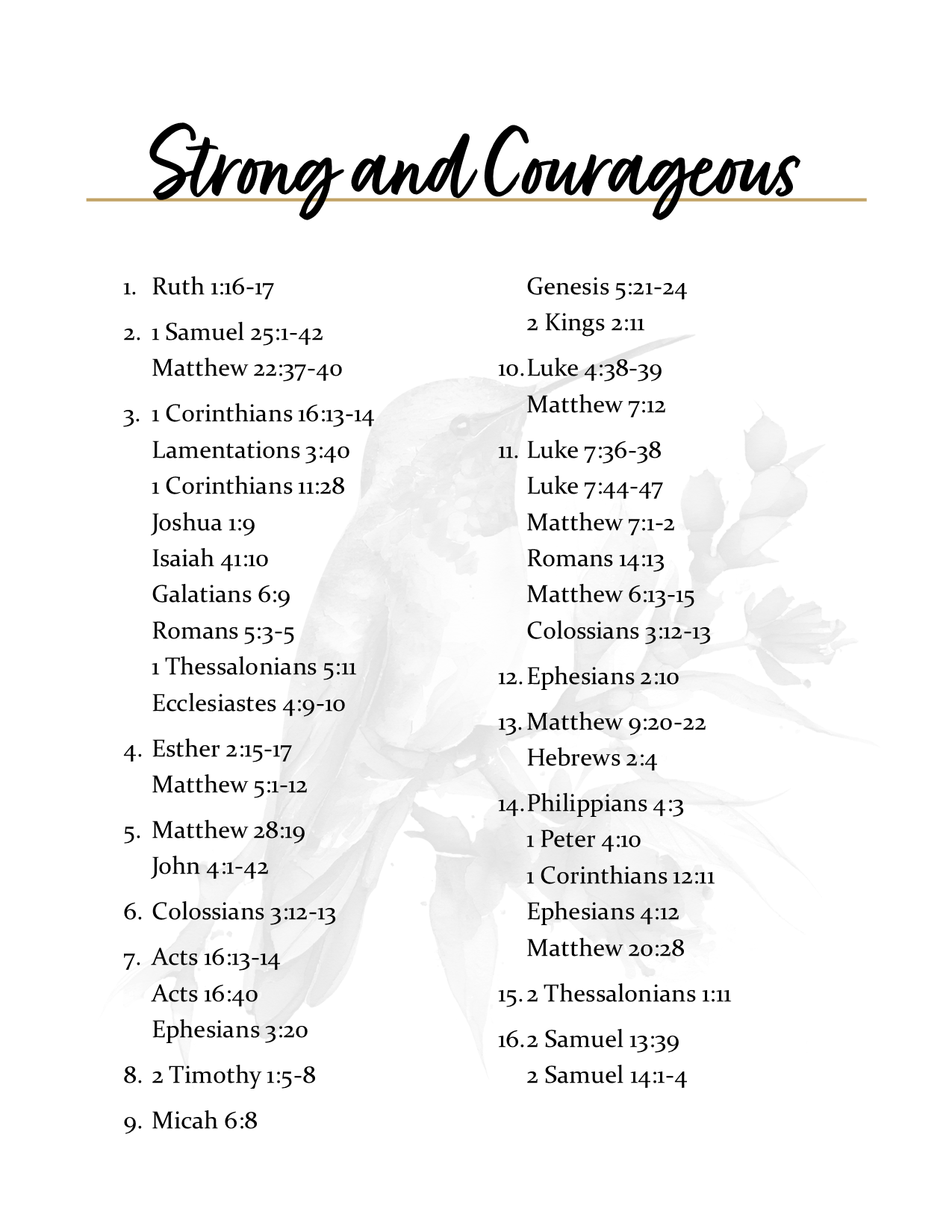 bible, women of history, and women of the world today whose lives have embolden to have strong faith in God—no matter the twists and turns life throws at us. God wants us to be brave.
